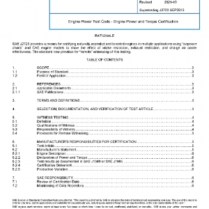 This document specifies the procedure to be used for a manufacturer to certify the net power and torque rating of a production engine according to SAE J1349 (Rev. 8/04) or the gross engine power of a production engine according to SAE J1995.