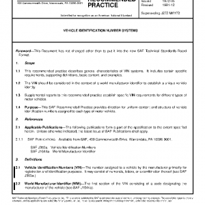 This recommended practice describes general characteristics of VIN systems. It includes certain specific requirements, supporting definitions, basic content, and examples.