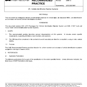 This recommended practice describes general characteristics of VIN systems. It includes certain specific requirements, supporting definitions, basic content, and examples.