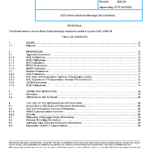 This SAE Standard specifies a message set, and its data frames and data elements, for use by applications that use vehicle-to-everything (V2X) communications systems.