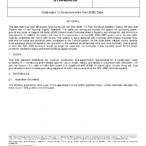 This SAE standard establishes the minimum construction and performance requirements for a combination cable consisting of 11 conductors and 4 twisted pairs for use on trucks, trailers, and dollies in conjunction with SAEJ2691. (15 pole connectors.) The cable includes both power and unjacketed SAE J1939-15 paired signal circuits along with dual ground wires to accommodate grounding requirements within the constraints of the SAE J2691 terminal capacity.