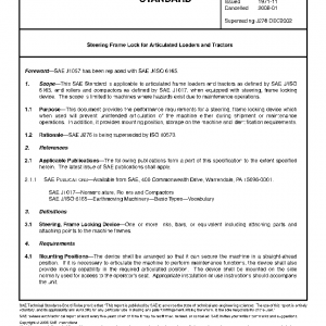 This SAE Standard is applicable to articulated frame loaders and tractors as defined by SAE J/ISO 6165, and rollers and compactors as defined by SAE J1017, when equipped with steering, frame locking device. The scope is limited to machines where hazards exist due to maintenance operations.