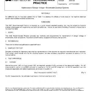 This SAE Recommended Practice provides test methods and requirements for maintenance of design voltage in snowmobile electrical systems. It pertains to both battery-equipped and batteryless systems.