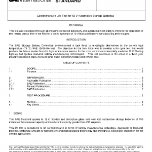 This SAE Standard applies to 12 V, flooded and absorptive glass mat lead acid automotive storage batteries of 180 minutes or less reserve capacity and cold crank capacity greater than 200 amperes.