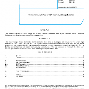 This SAE Standard applies to 12 V, flooded and absorptive glass mat lead acid automotive storage batteries of 200 minutes or less reserve capacity and cold crank capacity greater than 200 amperes.