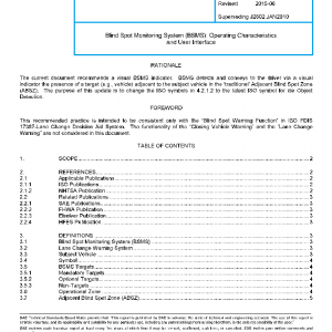 This document applies to original equipment and aftermarket BSMS systems for passenger vehicles. This document does not apply to installing a BSMS on either motorcycles or commercial vehicles. Finally, this document does not address Lane Change Warning systems, which monitor areas substantially farther back than the side blind spot areas monitored by the BSMS (See ISO FDIS 17387).