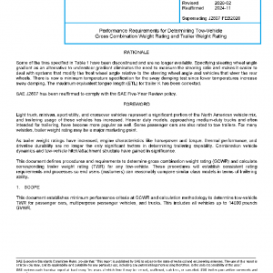 This document establishes minimum performance criteria at GCWR and calculation methodology to determine tow-vehicle TWR for passenger cars, multipurpose passenger vehicles, and trucks. This includes all vehicles up to 14000 pounds GVWR.