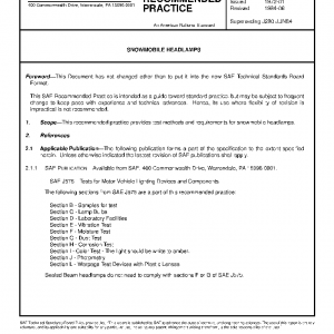 This recommended practice provides test methods and requirements for snowmobile headlamps.