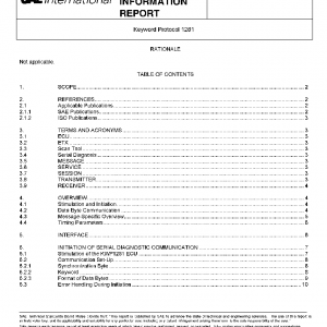 This Technical Information Report defines the diagnostic communication protocol Keyword Protocol 1281 (KWP1281). This document should be used in conjunction with SAE J2534-2 in order to fully implement the communication protocol in an SAE J2534 interface.