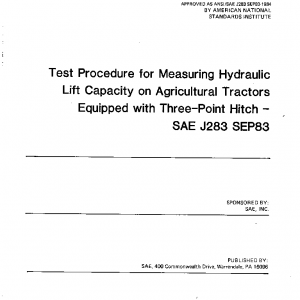 TEST PROCEDURE FOR MEASURING HYDRAULIC LIFT CAPACITY ON AGRICULTURAL TRACTORS EQUIPPED WITH THREE-POINT HITCH