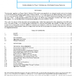 This document applies to a Plug-in Electric Vehicle (PEV) which is equipped with an onboard inverter and communicates using the Smart Energy Profile 2.0 Application Protocol (SEP2). It is a supplement to the SEP2 Standard, which supports the use cases defined by J2836/3™. It provides guidance for the use of the SEP2 Distributed Energy Resource Function Set with a PEV. It also provides guidance for the use of the SEP2 Flow Reservation Function Set, when used for discharging. It is not intended to be a comprehensive guide to the use of SEP2 in a PEV.