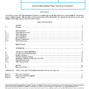 SAE has published multiple documents relating to PEV and vehicle-to-grid (V2G) interfaces. The various document series are listed below, with a brief explanation of each.