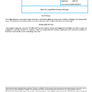 This SAE Surface Vehicle Information Report identifies and defines the drawings and parts relating to the use of the Hybrid III Large Male Test Dummy.