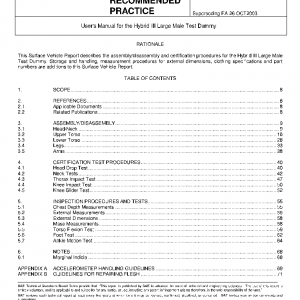 This SAE Surface Vehicle Information Report identifies and defines the assembly/disassembly and certification procedures relating to the use of the Hybrid III Large Male Test Dummy.