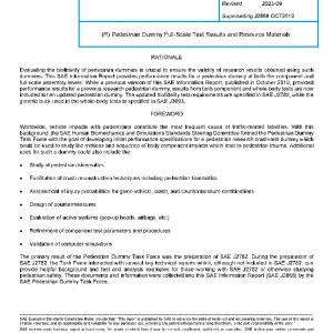 The materials included in this SAE Information Report are not intended to represent a complete summary of pedestrian safety research activities, but are rather a collection of materials which can be helpful to users of SAE J2782.