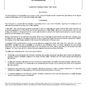 This document applies to 90 degree double inverted flares used on common sizes of automotive hydraulic brake tubes, and their associated tube nuts and mating ports. The intent of this standard is to replace the use of SAE J512 and SAE J533 for automotive hydraulic brake tube connections.