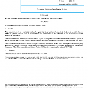 This classification system covers thermoset High Consistency Elastomers (HCEs) only. Thermoplastic Elastomer (TPE) materials are classified using SAE J2558. Silicone Formed In Place Gasket (FIPG) systems such as Room Temperature Vulcanized (RTV) Silicones, and Liquid Silicone Rubber (LSR) systems are classified using ASTM F2468.