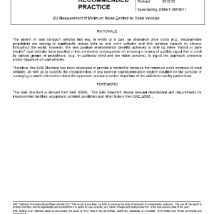 This SAE Standard is derived from SAE J2805 and specifies an engineering method for measuring the minimum noise emitted by road vehicles. The specifications reproduce the level of noise which is generated by the principal vehicle noise sources consistent with minimal noise emission in urban traffic. The method is designed to meet the requirements of simplicity as far as they are consistent with reproducibility of results under the operating conditions of the vehicle.