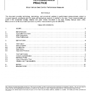 Motor Vehicle Seat Comfort Performance Measures