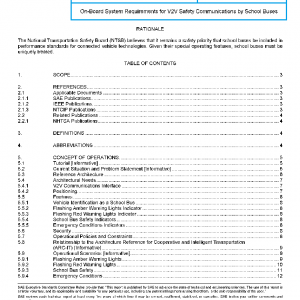 This document specifies the on-board system requirements for vehicle-to-vehicle (V2V) safety system for school buses, including functional requirements and performance requirements. The system can send the SAE J2735-defined basic safety message (BSM) over a wireless communications interface; the communications interface itself is outside the scope of this document. This document provides the specifications necessary to build interoperable systems that support V2V applications that rely on receiving BSMs from school buses.