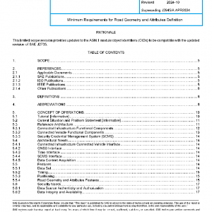 This report specifies the minimum requirements for the Road Geometry and Attributes (RGA) data set (DS) to support road geometry related motor vehicle safety applications. Contained in this report are a concept of operations, requirements, and design, developed using a detailed systems engineering process. Utilizing the requirements, the RGA DS is defined, which includes the DS Abstract Syntax Notation One (ASN.1) format, data frames, and data element definitions.