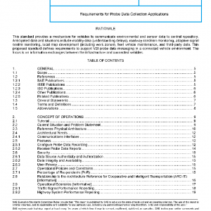 This document describes an interface between vehicle and infrastructure for collecting vehicle/probe data. That data may represent a single point in time or may be accumulated over defined periods of time or distance, or may be triggered based on circumstance. The purpose of this document is to define an interoperable means of collecting the vehicle/probe data in support of the use cases defined herein. There are many additional use cases that may be realized based on the interface defined in this document.