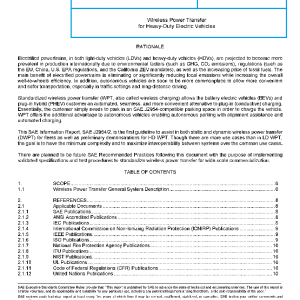SAE J2954/2 addresses unidirectional power transfer, from grid to vehicle; bidirectional transfer may be evaluated for a future document. This document is intended to be used in stationary applications (power transfer while vehicle is not in motion) and some dynamic applications.