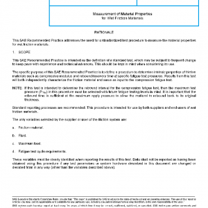 The specific purpose of this SAE Recommended Practice is to define a procedure to determine intrinsic properties of friction materials such as compressive modulus and rebound/recovery time at specific fatigue test pressures. Results from this test will both independently characterize the friction material and serve as input to the compression fatigue test.