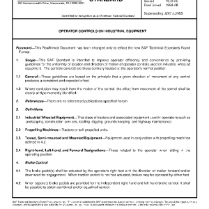 This SAE Standard is intended to improve operator efficiency and convenience by providing guidelines for the uniformity of location and direction of motion of operator controls used on industrial wheeled equipment. The controls covered are those centrally located at the operator’s normal position.