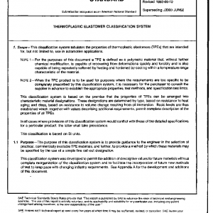 This classification system tabulates the properties of thermoplastic elastomers (TPEs) that are intended for, but not limited to, use in automotive applications.
