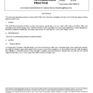 This SAE Recommended Practice provides dimensional specifications for the 114mm (4½ inch) and 146mm (5¾ inch) general service sealed lighting units, intended for use in such applications as motorcycle headlamps, military headlamps, industrial machinery headlamps, fog lamps, spot lamps, etc. See Figures 1 and 2 and Tables 1 and 2.