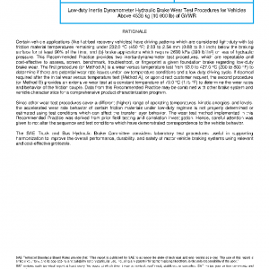 This Recommended Practice is derived from OEM and tier-1 laboratory tests and applies to two-axle multipurpose passenger vehicles, or trucks with a GVWR above 4536 kg (10 000 pounds) equipped with hydraulic disc or drum service brakes. Before conducting testing for a specific brake sizes or under specific test conditions, review, agree upon, and document with the test requestor any deviations from the test procedure. Also, the applicable criteria for the final test results and wear rates deemed as significantly different require definition, assessment, and proper documentation; especially as this will determine whether or not Method B testing is needed.