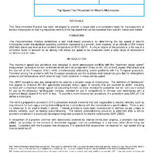 This SAE Recommended Practice incorporates a track-based test procedure that produces a representative value for vehicle top speed when operating on a level paved road with a fully charged battery.