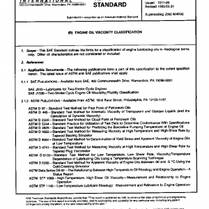 This SAE Standard defines the limits for a classification of engine lubricating oils in rheological terms only. Other oil characteristics are not considered or included.