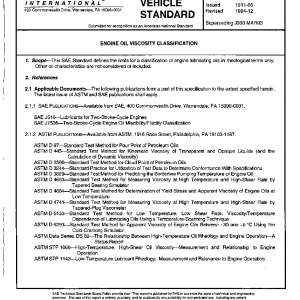 This SAE Standard defines the limits for a classification of engine lubricating oils in rheological terms only. Other oil characteristics are not considered or included.