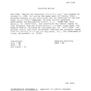 This SAE Standard defines the limits for a classification of engine lubricating oils in rheological terms only. Other oil characteristics are not considered or included.