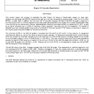 This SAE Standard defines the limits for a classification of engine lubricating oils in rheological terms only. Other oil characteristics are not considered or included.