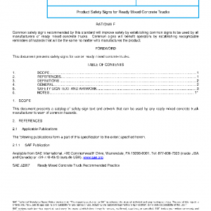 | PAGE | Common safety signs recommended by this standard will improve safety by establishing common signs to be used by all manufacturers of ready mixed concrete trucks. Common signs will benefit operators by establishing recognizable reminders of hazards that will be the same no matter who manufactures the product. |