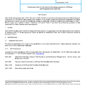 SAE J3078/5 specifies a test method for testing defrosting systems. It is applicable to off-road self-propelled work machines as defined in SAE J1116 and agricultural tractors as defined in ANSI/ASAE S390. The full list of machines covered is included in Table 1.