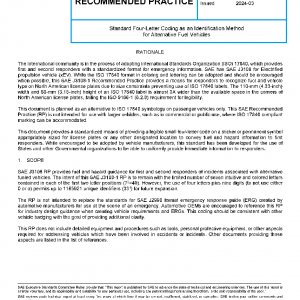 The RP is not intended to replace the standards for SAE J2990 format emergency response guide (ERG) created by automotive manufacturers for use at the scene of an emergency. Automotive OEMs are encouraged to reference this RP for industry design guidance when creating vehicle requirements and ERGs. This coding should be consistent with other vehicle badging with the goal of providing additional clarity.