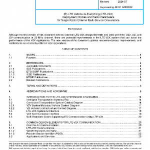 This SAE Standard describes a reference system architecture based on LTE-V2X technology defined in the set of ETSI standards based on 3GPP Release 14. It also describes cross-cutting features unique to LTE-V2X PC5 sidelink (mode 4) that can be used by current and future application standards. The audience for this document includes the developers of applications and application specifications, as well as those interested in LTE-V2X system architecture, testing, and certification.