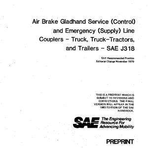 This SAE Recommended Practice is intended to provide a design, critical dimensions, performance requirements, and identification for gladhand-type air line couplers used to connect the brake systems of trucks, truck-tractors, and trailers when these vehicles are joined to operate as a combination unit.