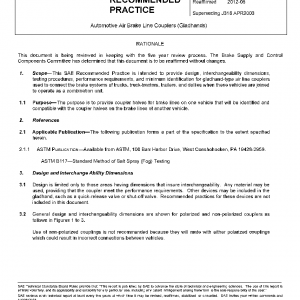 This SAE Recommended Practice is intended to provide design, interchangeability dimensions, testing procedures, performance requirements, and minimum identification for gladhand-type air line couplers used to connect the brake systems of trucks, truck-tractors, trailers, and dollies when these vehicles are joined to operate as a combination unit.