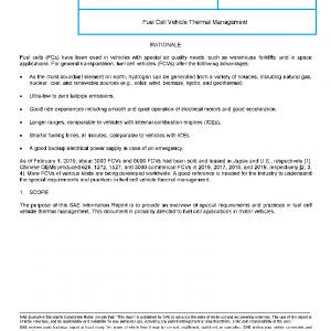 The purpose of this SAE Information Report is to provide an overview of special requirements and practices in fuel cell vehicle thermal management. This document is primarily directed to fuel cell applications in motor vehicles.