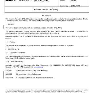 This standard describes a uniform “over end” and “full swing arc” lifting capacity rating for backhoes. It is based on the actual capacity of the machine to lift and support a load under stable conditions.