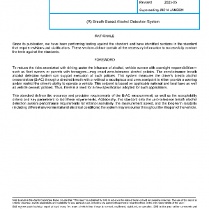 This SAE Standard establishes the performance specifications for the zero-tolerance breath alcohol detection system to reduce the risks of driving under the influence of alcohol. It defines the accuracy and precision requirements of the breath alcohol concentration (BrAC) measurement, as well as the acceptability criteria and key parameters to test these requirements. Additionally, this standard sets the performance requirements of the system for ethanol sensitivity, the response time, and the electrical, mechanical, and environmental conditions the system may encounter throughout the lifespan of the vehicle.