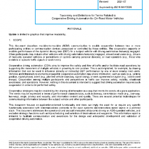 This document focuses on application-oriented functionality and does not imply the need for or require any specific functionality associated with communications protocols or the open systems interconnection model layers in a protocol stack. This document addresses the operational and tactical timescales of dynamic driving on ADS-operated vehicles, and excludes strategic functions such as trip scheduling and selection of destinations and waypoints. This information report is intended to facilitate communication and awareness for the design and anticipated development and validation of cooperative driving automation.