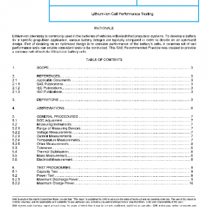 This SAE Recommended Practice defines performance and life cycle tests for lithium-ion cells used primarily for propulsion of electric vehicles including battery electric vehicles (BEVs), hybrid electric vehicles (HEVs), and other similar propulsion applications (for example, forklift trucks).