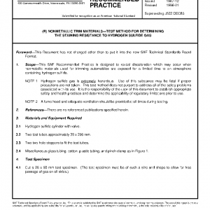 This SAE Recommended Practice is designed to reveal discoloration which may occur when nonmetallic materials used for trimming automobiles are exposed for a limited time to an atmosphere containing hydrogen sulfide.