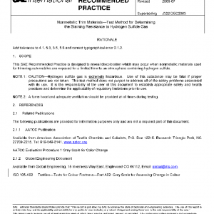 This SAE Recommended Practice is designed to reveal discoloration which may occur when nonmetallic materials used for trimming automobiles are exposed for a limited time to an atmosphere containing hydrogen sulfide.